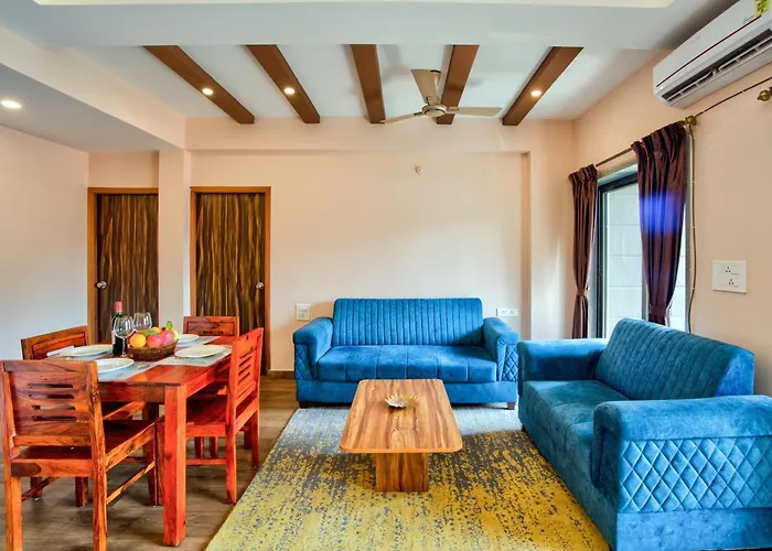 Luxury 2Bhk Apartment Near Candolim is equipped with an electric kettle, a refrigerator, and kitchenware, ensuring your comfort. Fast access to Goa airport within 35 km is provided.